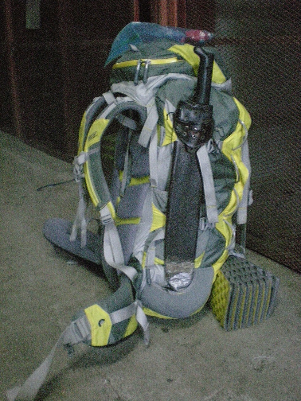 The pack ready to go, complete with obligatory machete