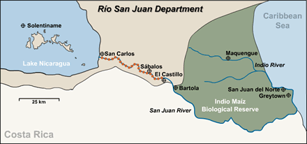 To understand why El Castillo became an important spot in Nicaragua, it’s best to first view its geography on this satellite map.