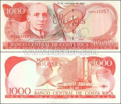 The 1,000 bill is called ¨un rojo¨ due to its red color.  It showcases Tomas Soley Guell, Costa Rica´s President from 1932-1982.  Also on the bill is the National Insurance Institute, a state run insurance company founded by Guell.